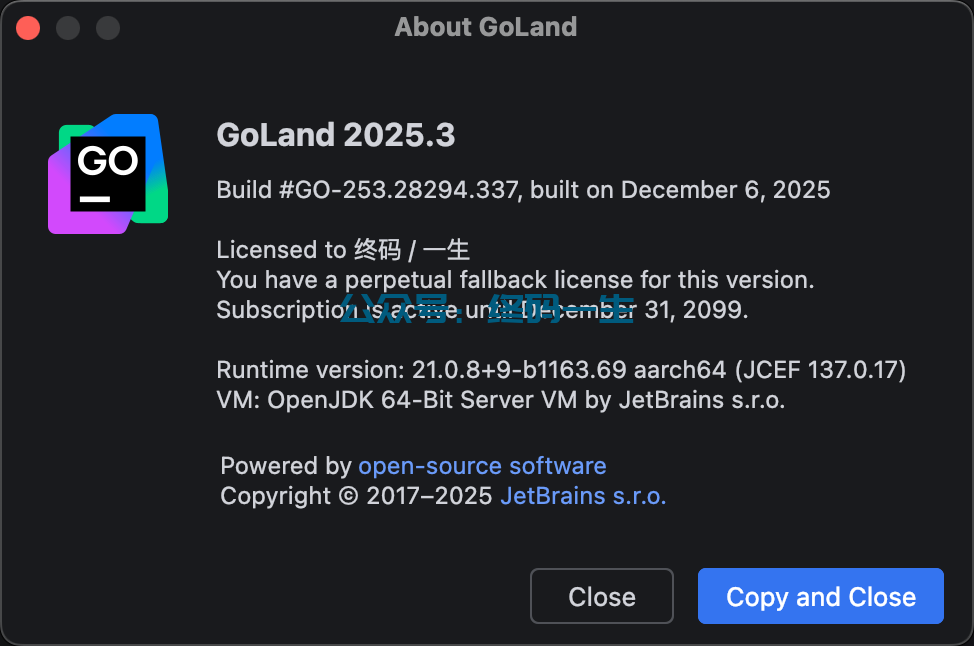 Goland 2025.3 永久激活码 破解教程 最新免费破解工具 一键激活2099