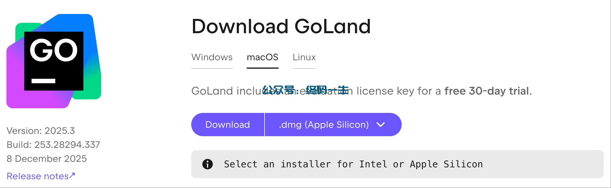 官方下载地址:https://www.jetbrains.com/goland/download/