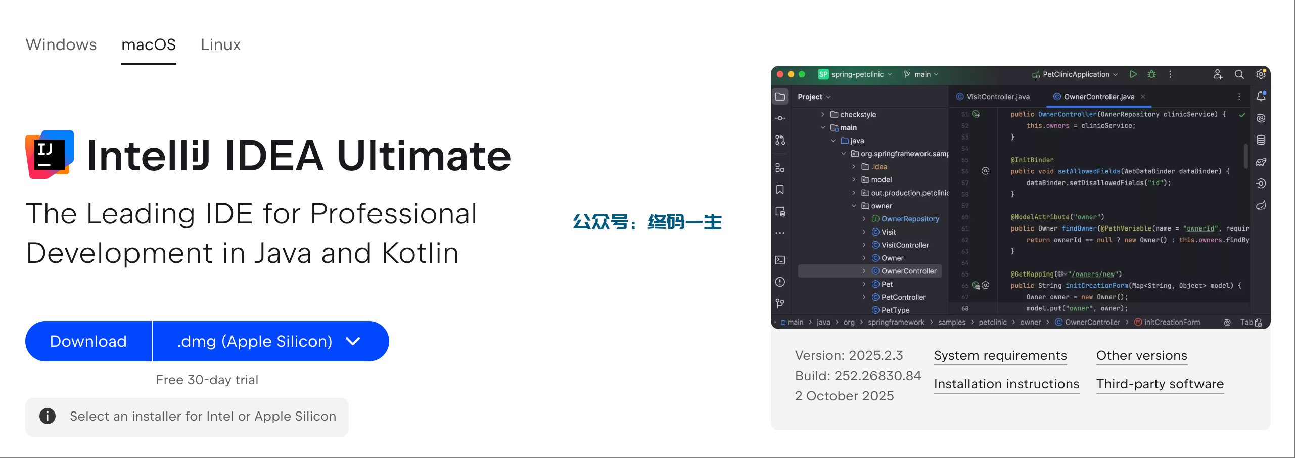 官方下载地址:https://www.jetbrains.com/idea/download/