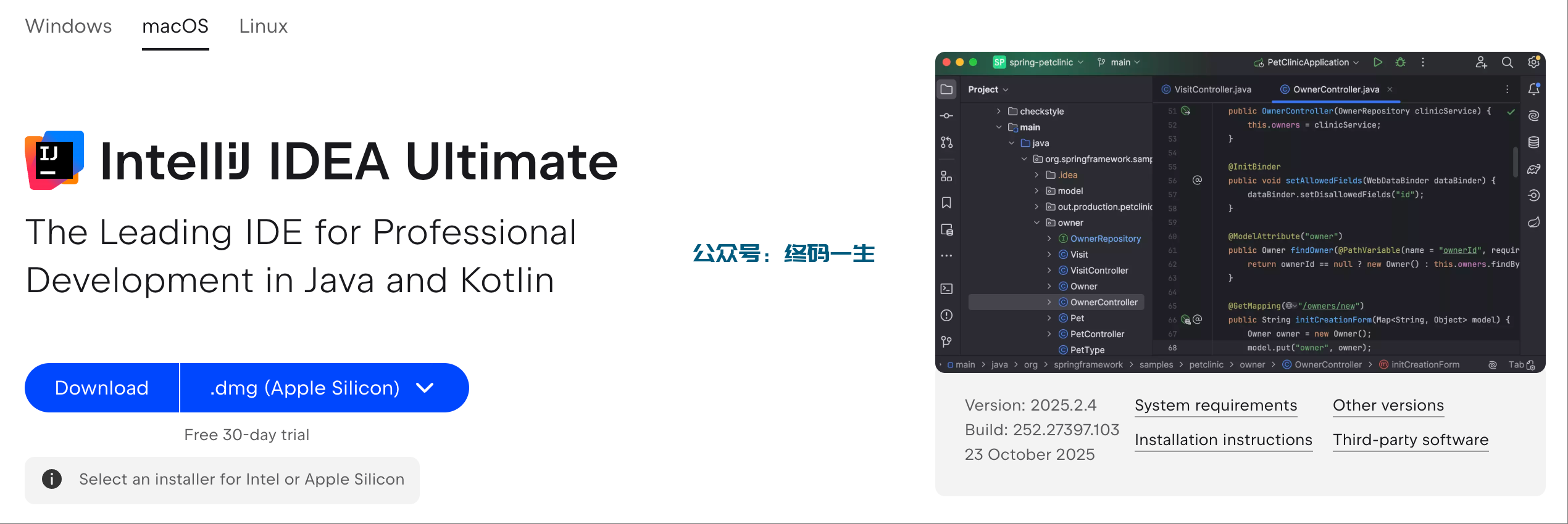 官方下载地址:https://www.jetbrains.com/idea/download/