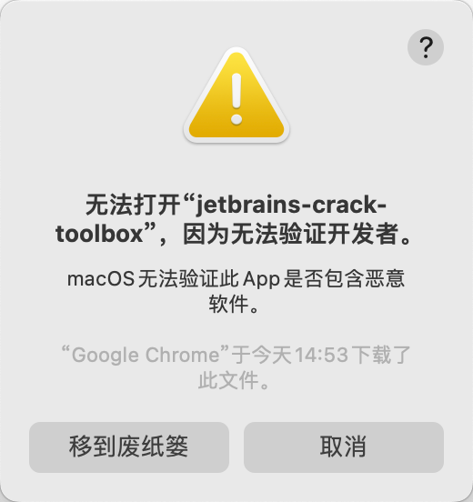 下面以Mac 下破解为例,执行工具前先退出全部IDE,然后双击执行jetbrains-crack-toolbox_2.3.0_universal.dmg文件,安装工具,如下: