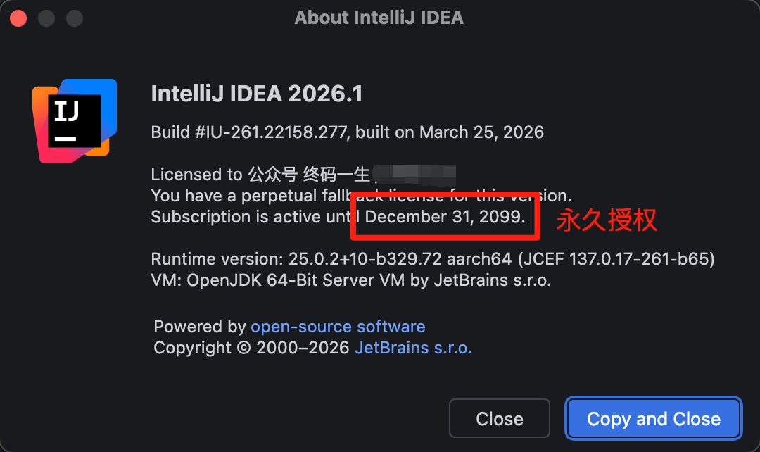 转载时请注明出处:https://blog.idejihuo.com/jetbrains/intellij-idea-2026-1-latest-activation-tutorial-permanent-activation-code.html