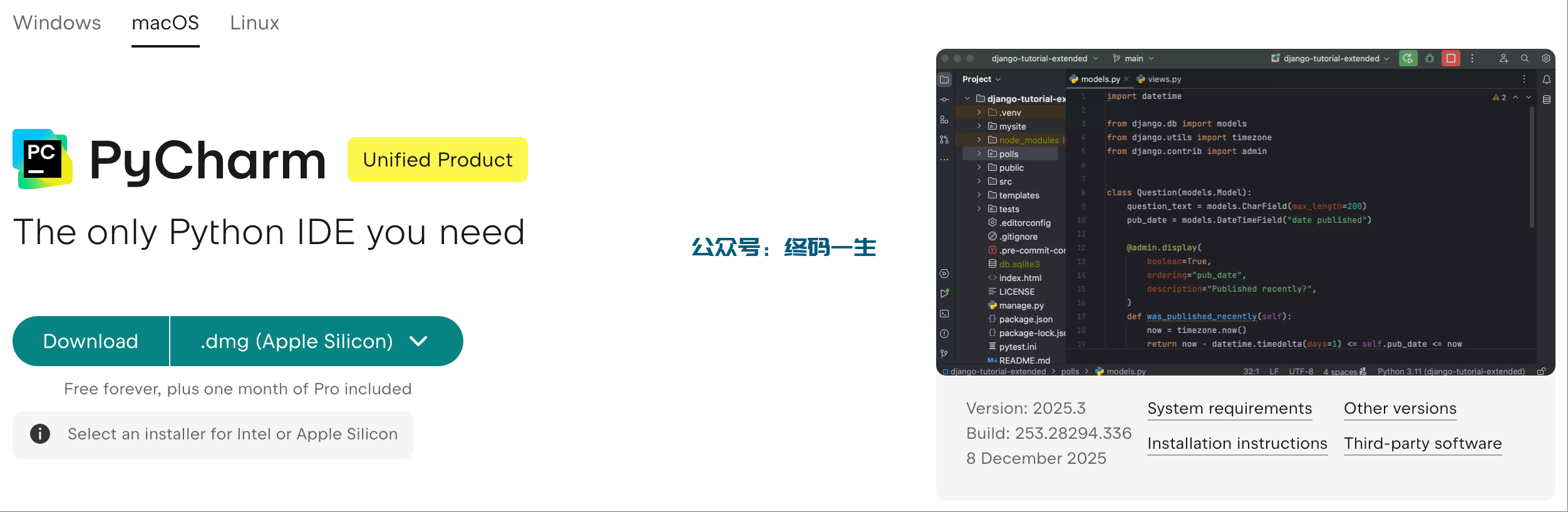 官方下载地址:https://www.jetbrains.com/pycharm/download